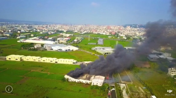 就在搶救過程中,工廠濃煙直竄天際,還不斷冒出黃色濃煙,消防局第一大隊長詹江洲正在坐鎮指揮時,突然從工廠傳出爆炸巨響,一顆巨大火球直往上衝,一度高達上百公尺,還有人出動空拍機鳥瞰整個440坪工廠遭大火吞噬的畫面,以及濃煙直竄天際,影片曝光相當震撼。